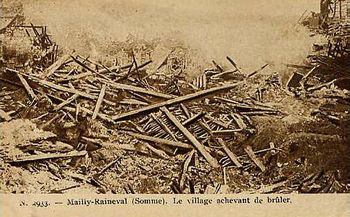 Mailly-Raineval - Le village achevant de brûler